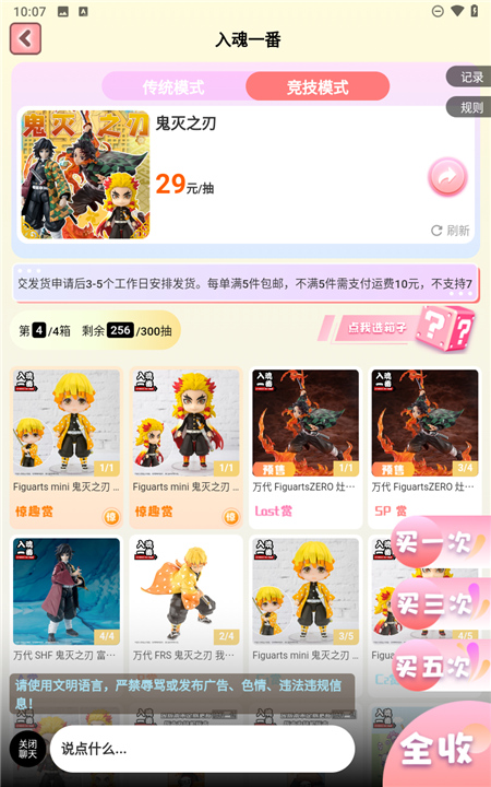 3、入魂一番赏只需要五件物品就可以实现免运费。实时通风发货,有效实现免运费。
