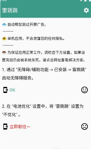 4、雷跳跳软件可以快速克服各种应用启动页面的广告障碍,让用户享受无缝进入应用的流畅体验。