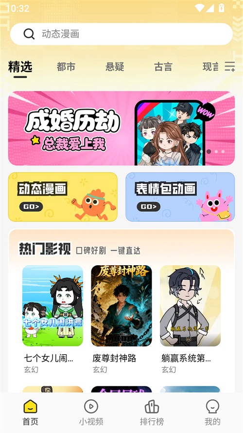 1、首先下载安装熊猫头漫画短剧软件,安装完成后打开应用,进入主界面浏览内容。
