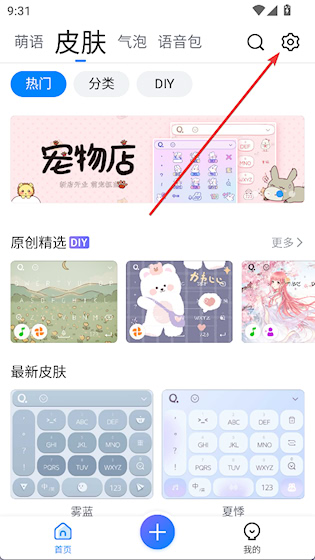 1、首先打开QQ输入法应用程序,然后点击界面右上角的齿轮图标进入设置。