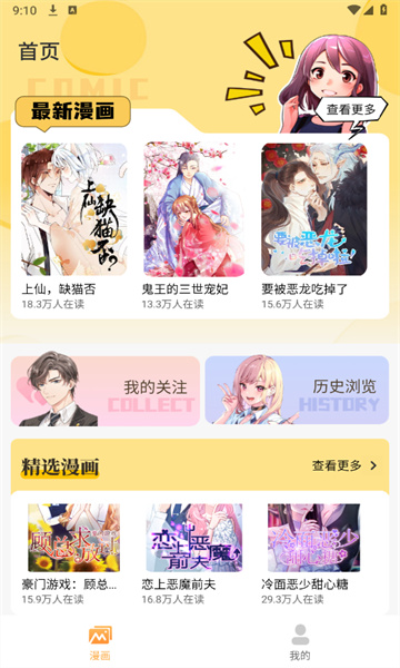 3、它汇集了种类繁多的优质正品漫画资源,让漫画迷随心所欲地自由轻松地阅读漫画。