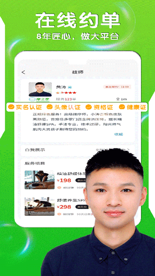 2、网上支付订单更加方便和简单。用户可以快速下单并预约他们想要的各种按摩服务。