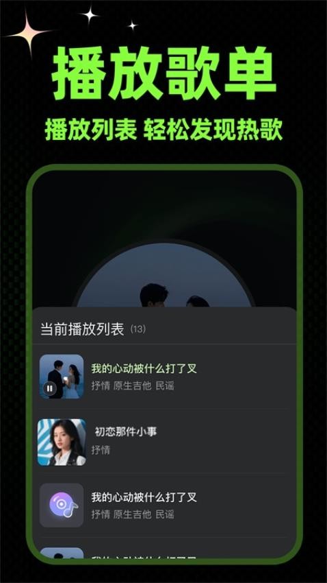 1、这是一个简单而纯粹的音乐播放器。从现在开始,你可以打开软件听音乐,让音乐听回到它的本质。,